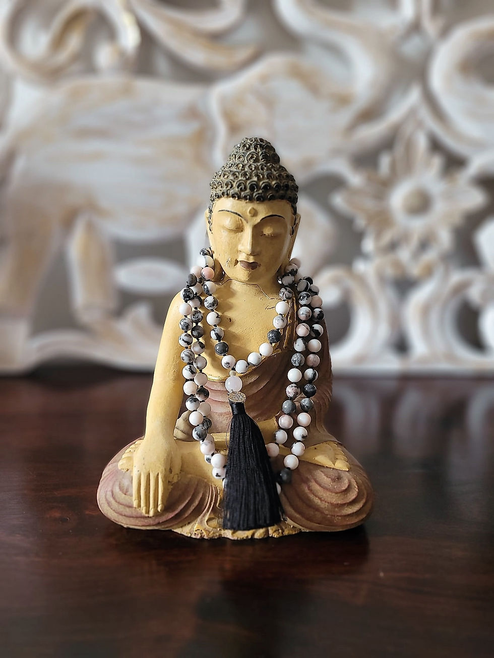 JAPA MALA BLACK & WHITE "I Reduce Stress"